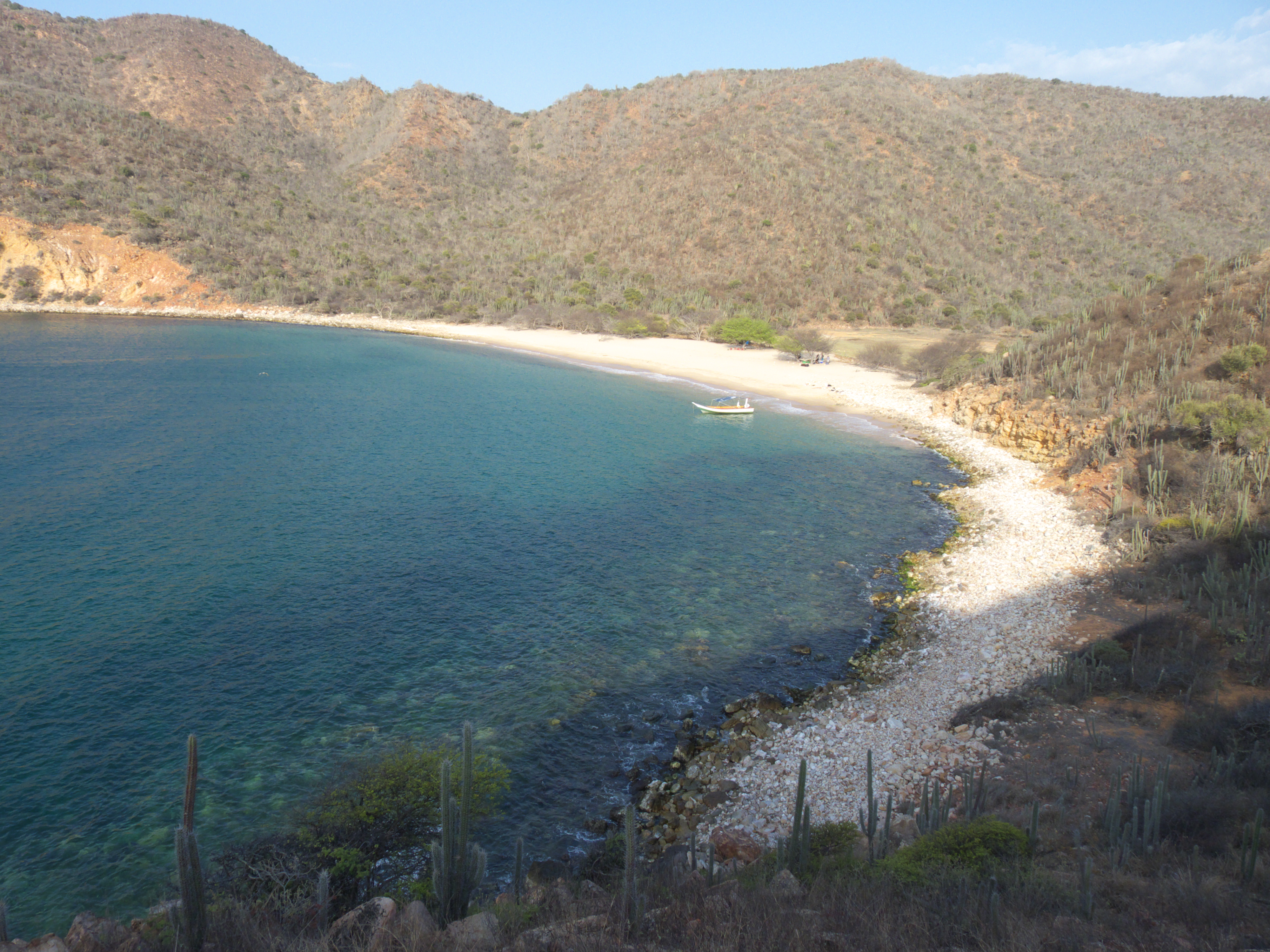 Autour de la plage, le paysage me rappelle un peu celui de Mochima, mais en plus verdoyant. Mieux vaut se glisser dans l’eau pour oublier un peu la chaleur !
