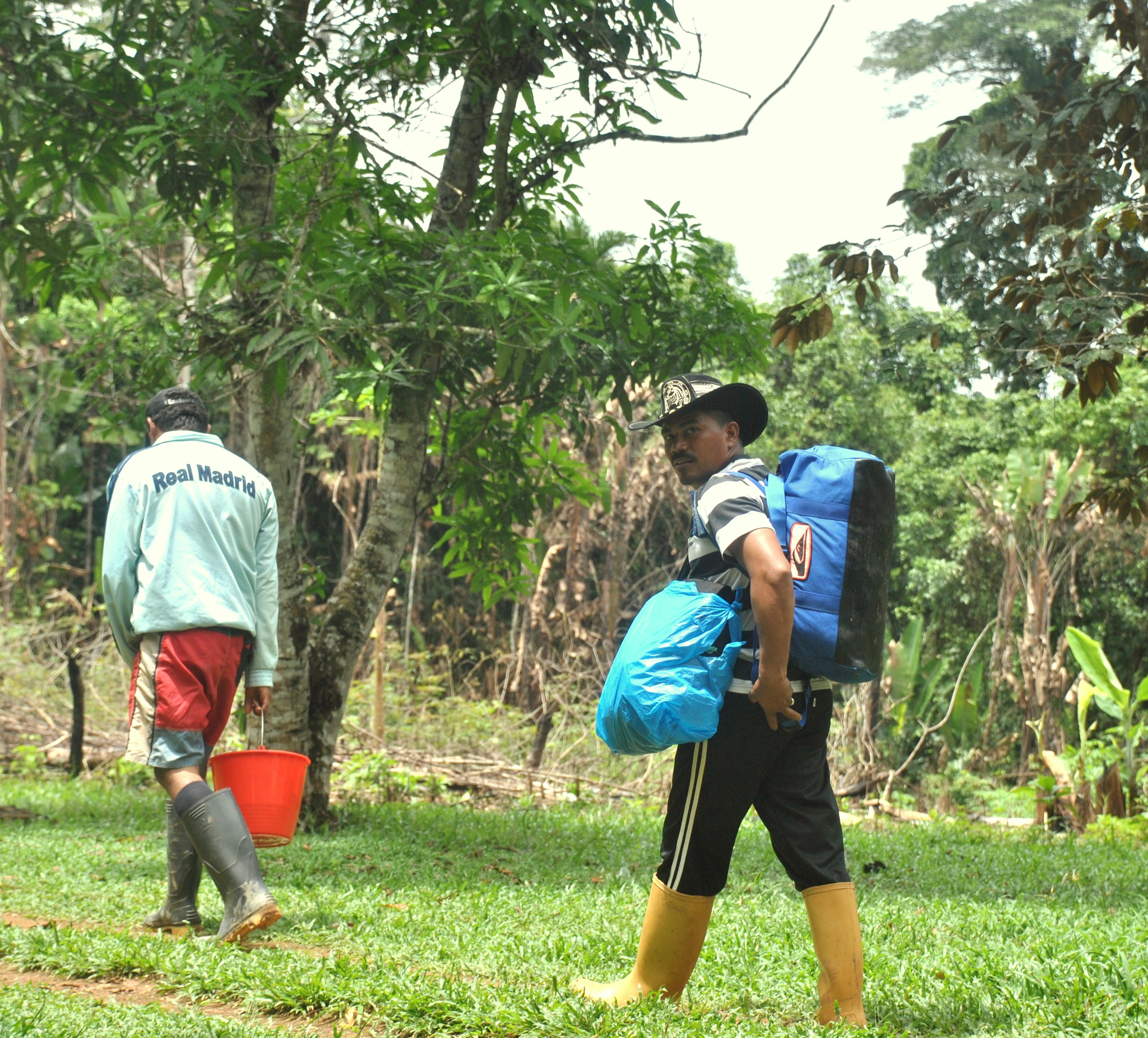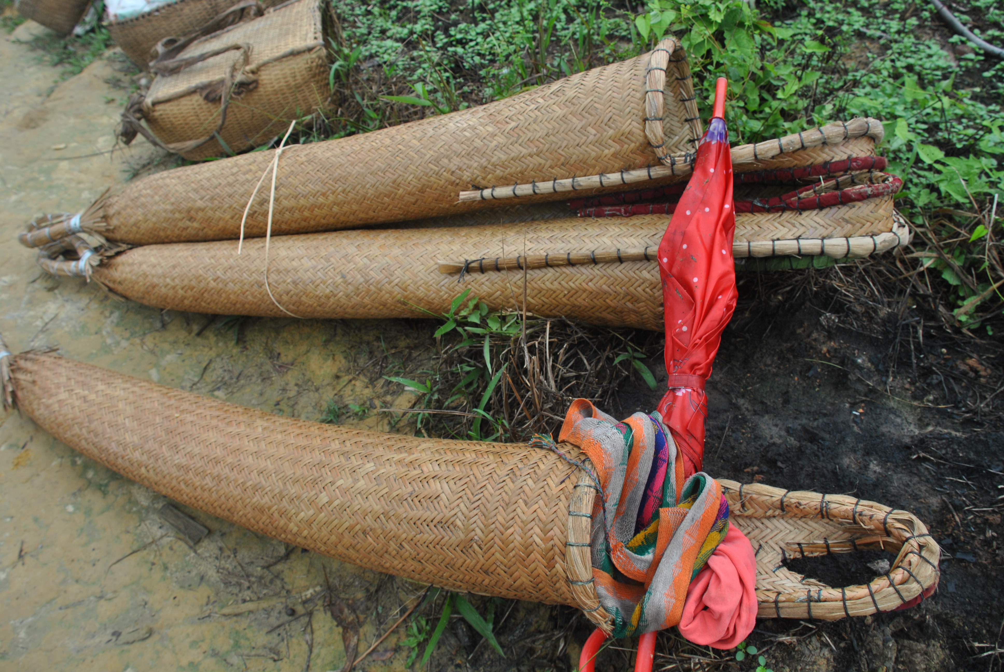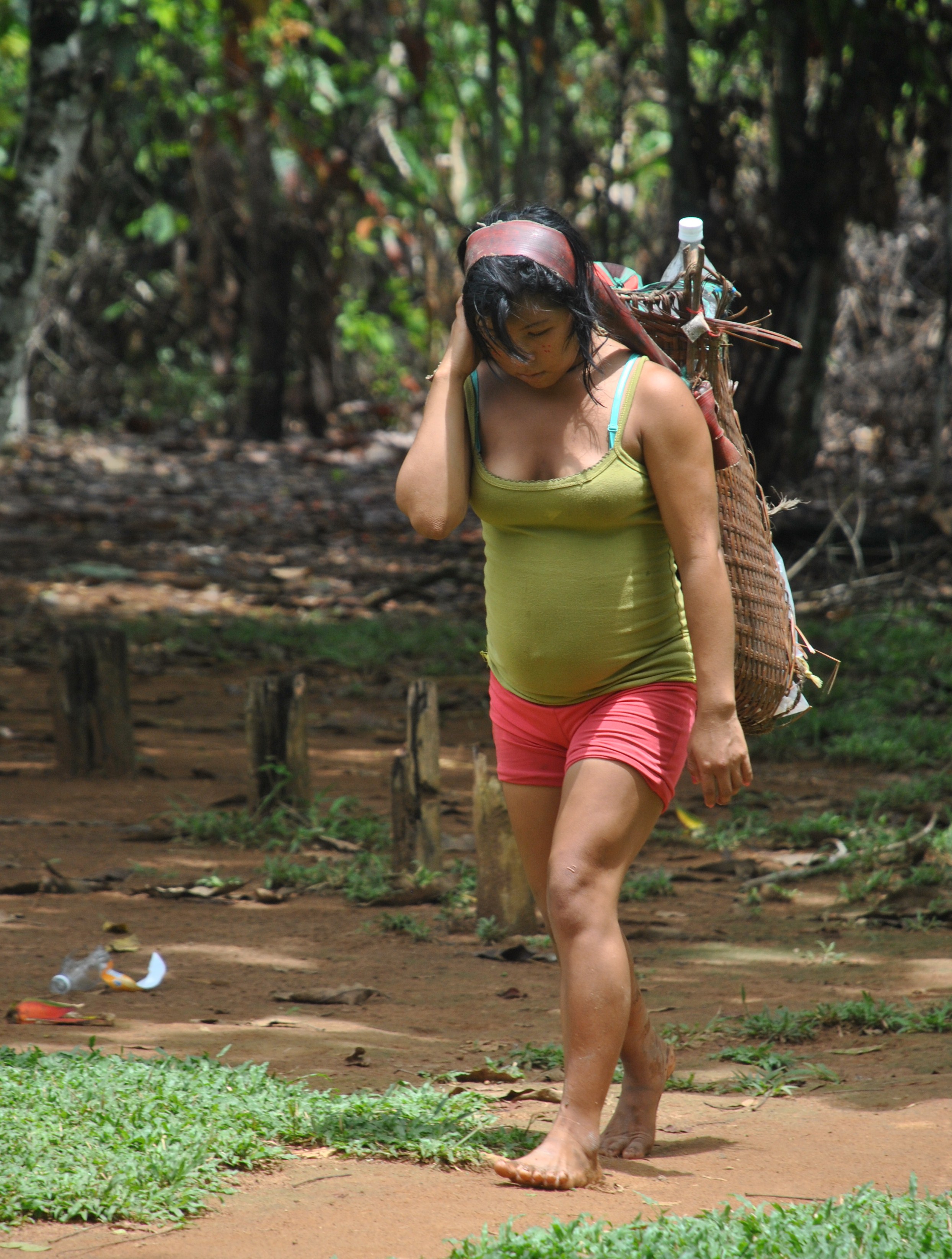Certaines transportent dans leur dos des paniers tressés de fibres de palmiers moriches de toutes les formes, y compris conique ; la plupart du temps remplis de bois ou de manioc, la nourriture de base locale.