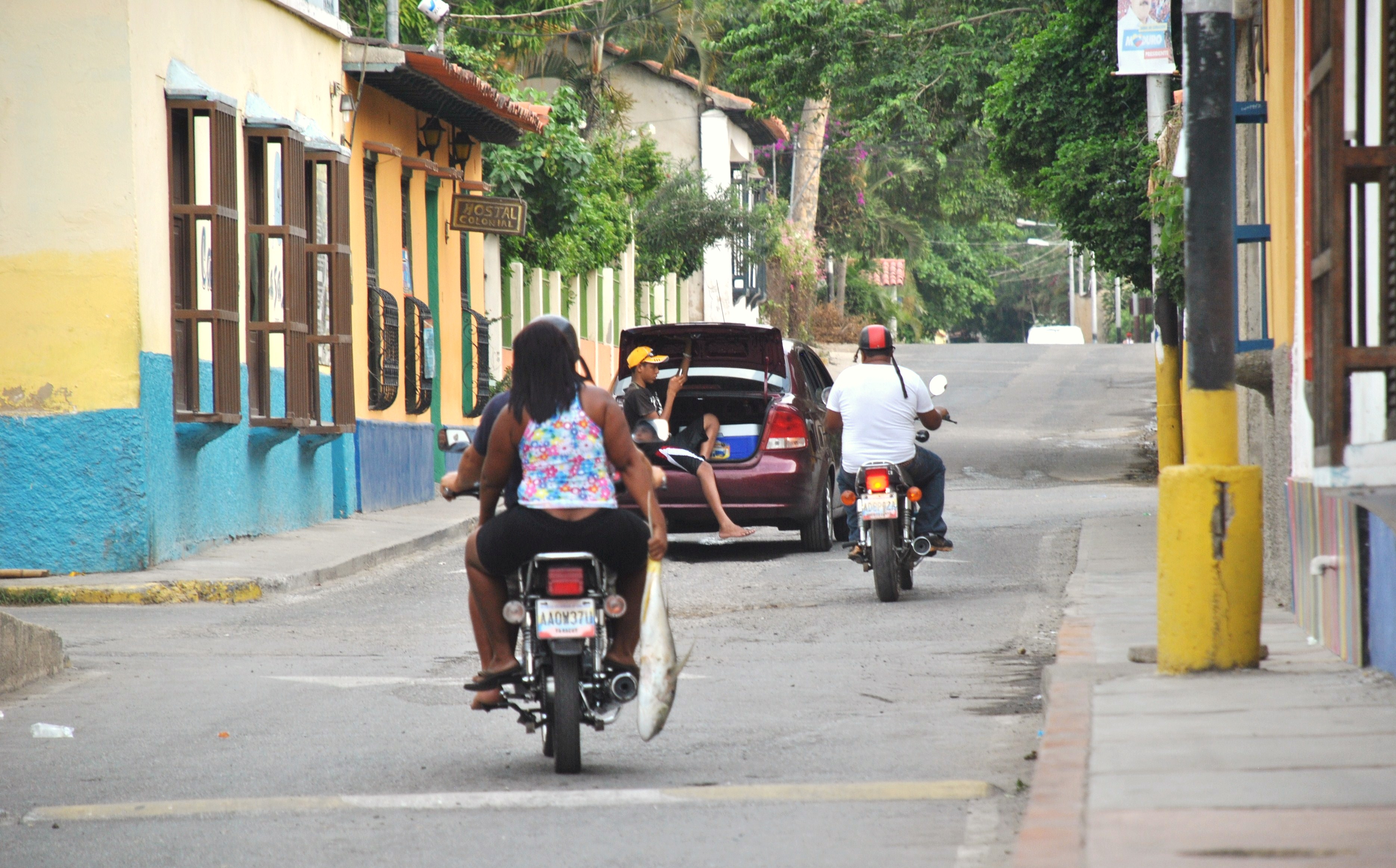 Après une pause fraîcheur, la visite du village animé de Puerto Colombia m’assourdit presque tellement le contraste avec les lieux déserts visités ces derniers jours est saisissant. A chaque coin de rue, des commerces en tous genre où se promènent jeunes et familles, des vénézuéliens de la ville et des « negros » (dixit Marun). Les bus klaxonnent et des deux roues surgissent de tous côtés.
