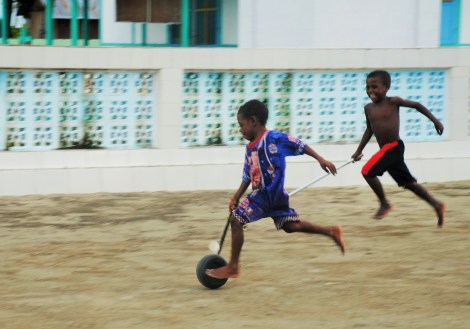 Nous apprécions la nonchalance qui se dégage de leur village à la quiétude insulaire… Réfugiés dans la maison d’une jeune femme qui berce son bébé dans un hamac improvisé d’un drap suspendu au plafond, nous nous plaisons à regarder les plus grands jouer dans les flaques d’eau… Un plaisir universel, semble t’il si l’on considère comme ils s’en donnent à cœur joie.