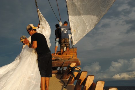 Déterminé et plus puissant que jamais, le Nataraja file droit sur Sorong, malgré une houle naissante et une pluie qui s’épaissit et s’intensifie.