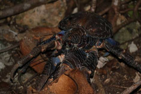 Sur son minuscule bout de terre de quelques mètres carrés seulement, vivent 35 coco crabes, des crustacés au corps de langoustes qui se nourrissent exclusivement de noix de coco.