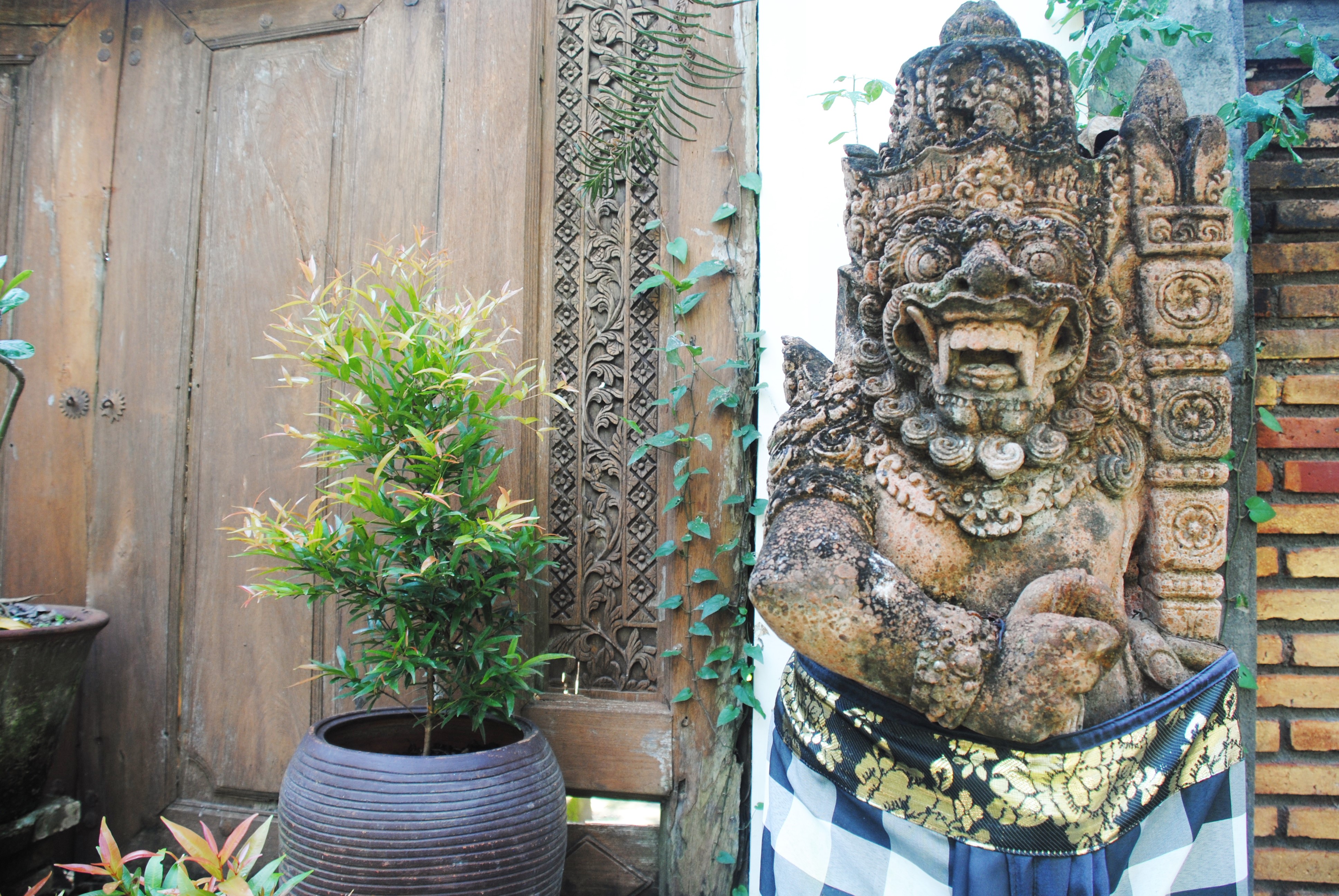 Sans transition, nous posons le pied sur une terre moite et tiède. L’aéroport, lui, s’est enrichi d’enluminures et de décorations bouddhistes. Bienvenue à Bali ! Le parking est envahi de véhicules qui se frayent tant bien que mal un chemin parmi la circulation.