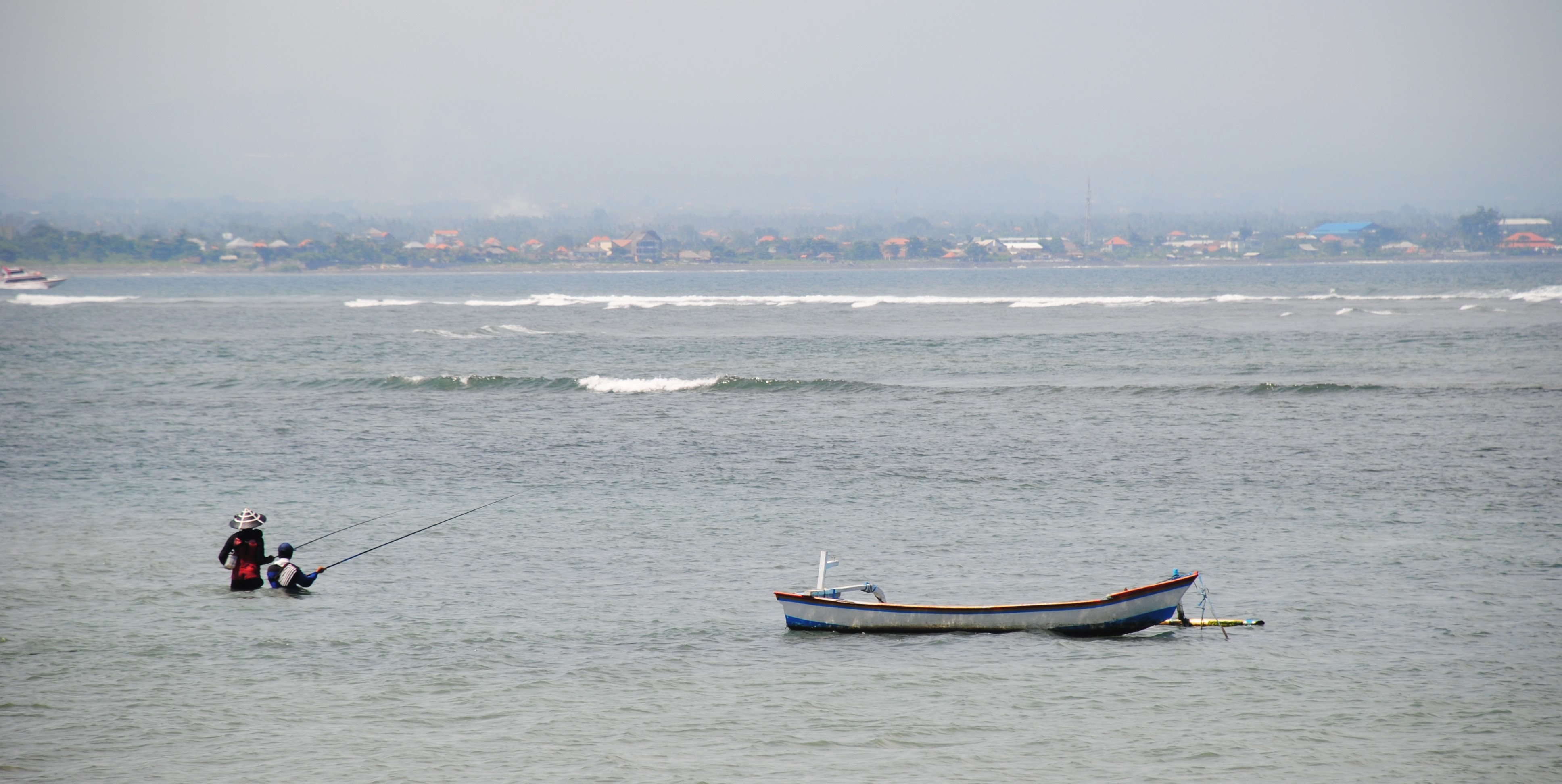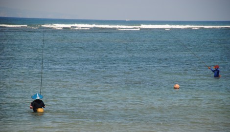 Les pêcheurs avancent dans la mer avec leur ligne, de l’eau jusque la taille. Les enfants donnent de grands coups de pédales pour aller et venir d’un bout à l’autre de la station balnéaire.