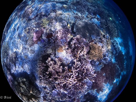L’eau est parfaitement claire, sans plancton, si bien que le contraste entre le monde marin et le bleu de la mer resplendit comme un joyau aux angles et reliefs jamais identiques, toujours uniques. Comme une parure de perles multicolores qui se serait déposée au fond de l’eau.